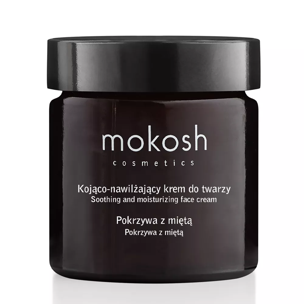 Kojąco-nawilżający krem do twarzy Pokrzywa z miętą Mokosh. Regeneruje i łagodzi suchą i podrażnioną skórę, a także poprawia jej koloryt, intensywnie nawilża skórę tworząc na jej powierzchni warstwę ochronną, daje efekt zmatowienia.