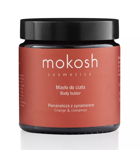Bogate w składniki aktywne masło do ciała Mokosh o orientalnym zapachu pomarańczy z cynamonem odżywia skórę i poprawia jej barierę hydrolipidową. Witamina E działa antyoksydacyjnie, zaś macerat z kwiatów gorzkiej pomarańczy regeneruje i wygładza skórę oraz łagodzi podrażnienia. Masło shea, olej arganowy, olej jojoba, olej z kiełków pszenicy, olej ze słodkich migdałów, a także bogaty w witaminę A i karoteny olej z marchewki długotrwale nawilżają, uelastyczniają i odżywiają skórę.