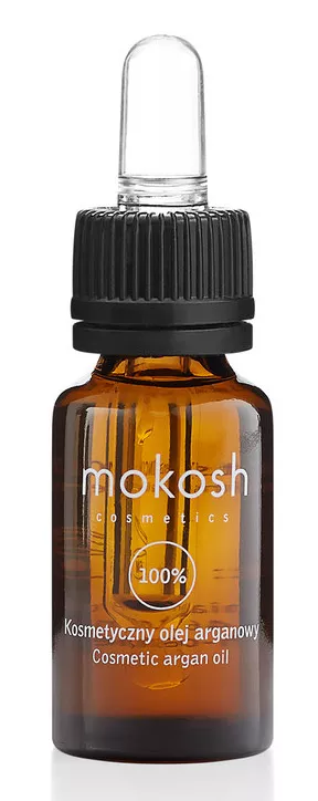 Ten bogaty olej, składa się z nienasyconych kwasów tłuszczowych, głównie oleinowego i linolowego. Zawiera niezwykle dużą liczbę naturalnych przeciwutleniaczy, chroniących organizm przed wolnymi rodnikami, a także liczne zwązki o działaniu antyoksydacyjnym, regeneracyjnym i promieniochronnym, między innymi karotenoidy, polifenole, fitosterole, witaminę E. Olej arganowy Mokosh umieszczono w ciemnej buteleczce, żeby nie tracił swoich właściwości pod wpływem działania słońca. Kosmetyk został przebadany dermatologicznie i jest certyfikowany jako organiczny.