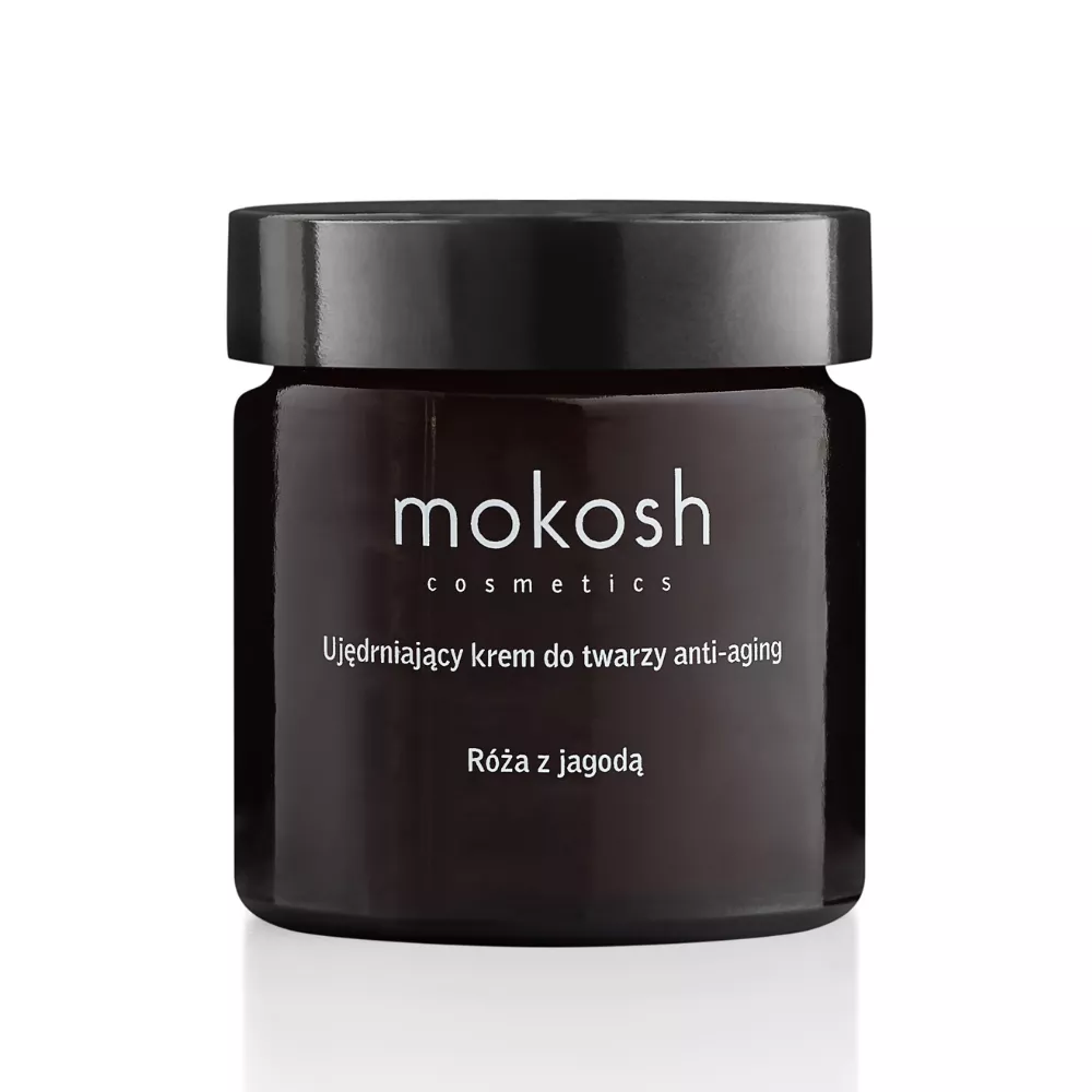 Ujędrniający krem do twarzy anti-aging Mokosh Róża z jagodą to połączenie drogocennych ekstraktów i olei z wyjątkowymi składnikami aktywnymi, które dogłębnie nawilżają, ujędrniają, chronią i wygładzają delikatną skórę twarzy. Ekstrakt z róży damasceńskiej, owoców borówki amerykańskiej, wanilii, malin i winogron wykazuje silne działanie antyoksydacyjne neutralizując wolne rodniki.