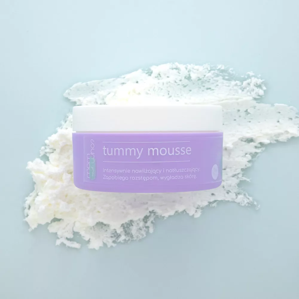 delikatnie wmasuj odpowiednią ilość musu w czystą i suchą skórę brzuszka.