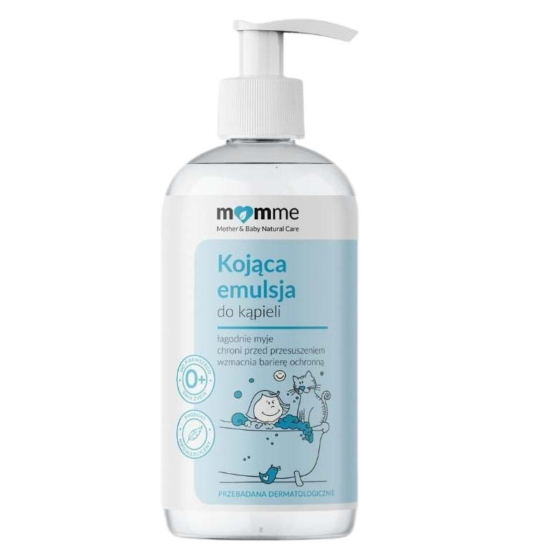MomMe Kojąca emulsja do kąpieli 200ml to wyjątkowo łagodny, bezzapachowy kosmetyk stworzony z myślą o delikatnej pielęgnacji skóry dzieci i dorosłych. Dzięki naturalnym składnikom aktywnym oraz roślinnym substancjom myjącym pochodzącym z kokosa, emulsja skutecznie myje, jednocześnie chroniąc skórę przed przesuszeniem i wzmacniając jej barierę ochronną. Produkt sprzyja odbudowie i utrzymaniu równowagi flory bakteryjnej skóry, minimalizując ryzyko podrażnień oraz przesuszenia.