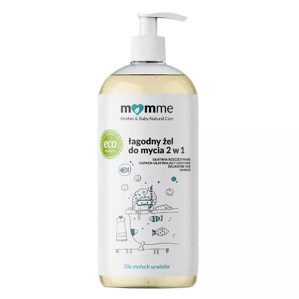 MomMe Łagodny żel do mycia 2w1 500ml to hipoalergiczny produkt stworzony według naturalnej receptury, idealny do pielęgnacji ciała i włosów dzieci oraz niemowląt. Żel pełni funkcję bogatego w składzie, wygładzającego szamponu oraz łagodnego żelu, który delikatnie myje całe ciało, nie powodując podrażnień, nawet w delikatnych okolicach intymnych. Jego kremowa konsystencja jest wydajna i przyjemnie się pieni.