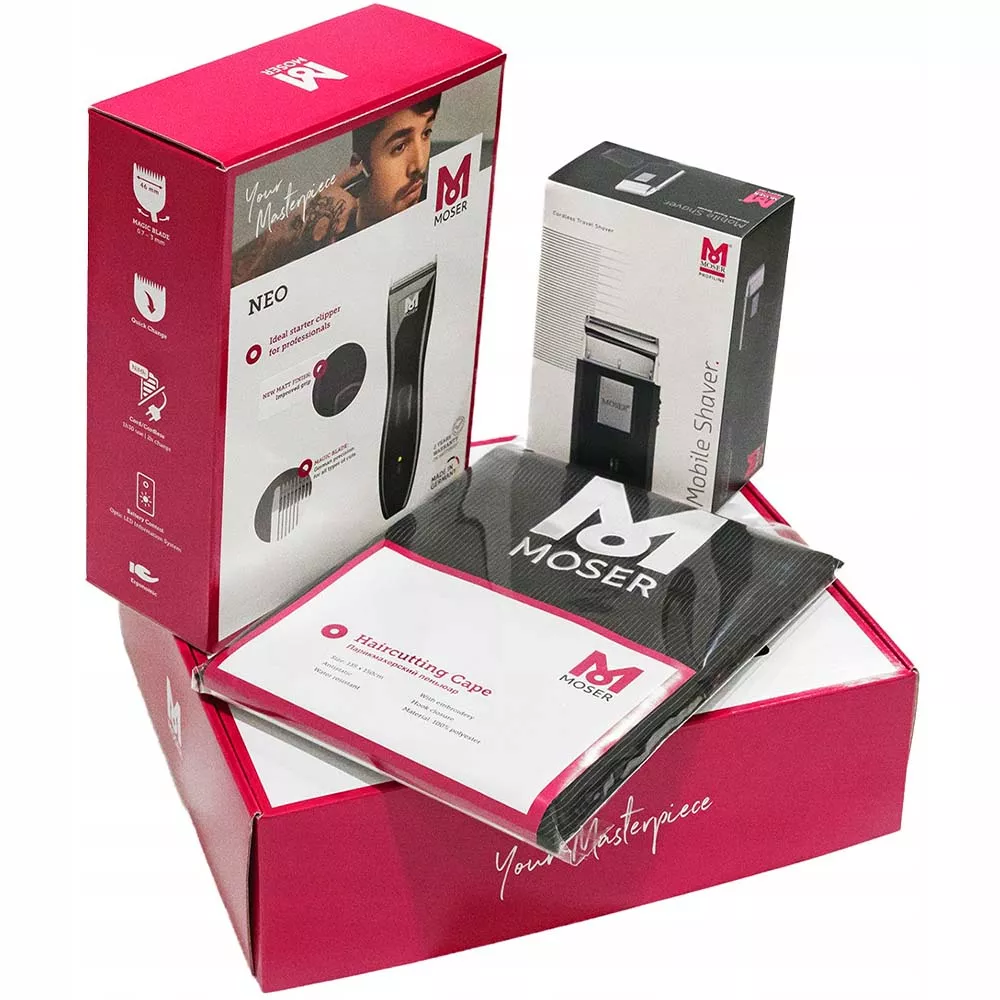 Moser zestaw prezentowy, Moser Neo + Mobile Shaver + peleryna gratis
