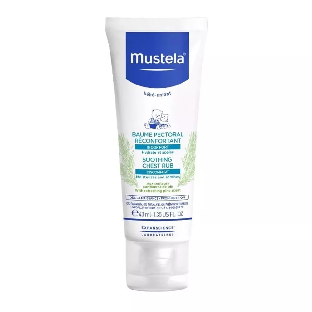 Mustela Soothing Chest Rub to nawilżająco-łagodzący żel do klatki piersiowej, stworzony specjalnie dla niemowląt. Dzięki ekstraktom naturalnego pochodzenia oraz orzeźwiającym zapachom sosny, produkt natychmiast nawilża i koi skórę, zapewniając dobre samopoczucie i relaks przed snem. Idealny do stosowania przed snem, wspiera spokojny i relaksujący wypoczynek, pozostawiając skórę dziecka miękką i nieklejącą.