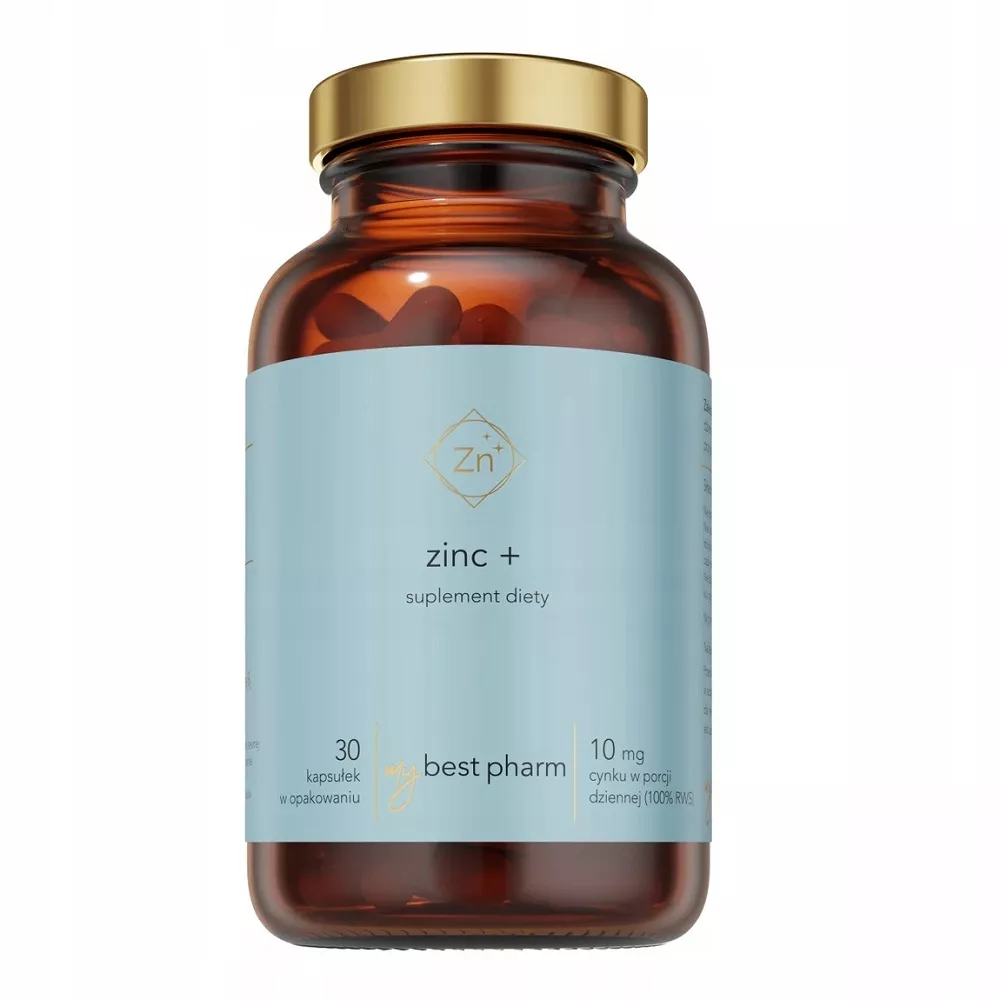 MyBestPharm MyBest Zinc+ to suplement diety w formie kapsułek, który oferuje dobrze przyswajalną formę cynku wzbogaconą o ekstrakty roślinne naturalnego pochodzenia oraz witaminę B2. Jest idealny dla osób pragnących uzupełnić niedobory cynku w organizmie, wspierając tym samym układ odpornościowy oraz dbając o zdrową skórę, włosy i paznokcie.