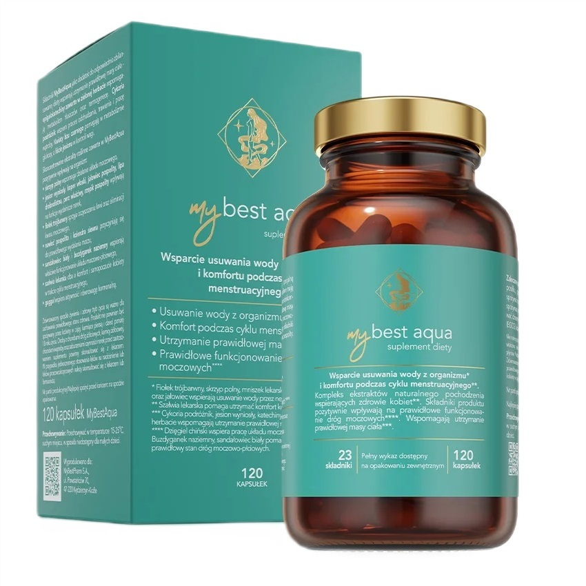 MyBestPharm MyBestAqua to unikalny suplement diety zaprojektowany z myślą o kobietach, które doświadczają dyskomfortu związanego z zatrzymywaniem wody w organizmie, wahaniami nastroju i innymi objawami PMS. Przeznaczony do wsparcia gospodarki wodnej i hormonalnej organizmu, MyBestAqua oferuje kompleksowe działanie dzięki bogatemu składowi z 23 roślinnymi składnikami aktywnymi.