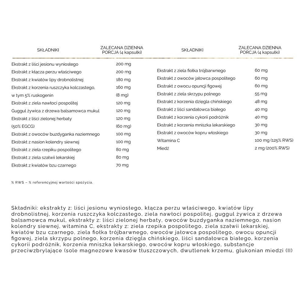 - Jedyny preparat na rynku w swojej kategorii o tak bogatym składzie - aż 23 roślinne składniki aktywne.