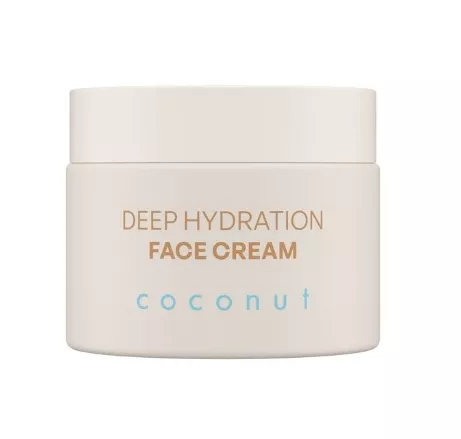 Odzyskaj naturalną świeżość i piękny wygląd z kremem Nacomi Deep Hydration. Delikatna formuła kosmetyku nadaje się do każdego typu skóry, która wymaga odpowiedniego nawilżenia! Pokocha go zarówno przesuszona, szorstka skóra, jak i tłusta, trądzikowa cera. Dzięki zawartości m.in. kwasu hialuronowego i wody kokosowej skutecznie nawilża, poprawia elastyczność oraz przywraca naturalny blask cery. Zapewnia uczucie ukojenia, wspomaga regenerację bariery ochronnej naskórka oraz pozostawia na skórze przyjemny, kokosowy zapach. Receptura kremu opiera się na najlepszych naturalnych składnikach, by Twoja cera odzyskała równowagę i promienny blask. Olej kokosowy dzięki swoim właściwościom nawilżającym i antyoksydacyjnym głęboko odżywia skórę, pozostawiając ją jedwabiście gładką i elastyczną. To naturalne źródło witamin i kwasów tłuszczowych, które pomagają w walce z wysuszeniem skóry oraz chronią ją przed działaniem szkodliwych czynników zewnętrznych.