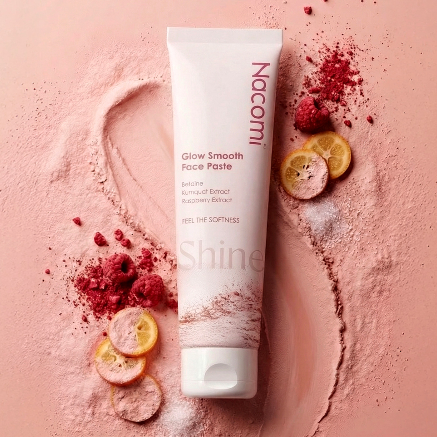 Nacomi Glow Smooth to innowacyjna pasta do mycia twarzy stworzona specjalnie dla skóry matowej, szorstkiej i zmęczonej, która wymaga odświeżenia oraz wyrównania tekstury. Dzięki wyjątkowej formule opartej na minerałach, glinkach i ekstraktach owocowych, produkt skutecznie oczyszcza pory, usuwa zanieczyszczenia oraz martwy naskórek, jednocześnie wygładzając i przywracając cerze naturalny, promienny blask. Delikatna piana powstająca w kontakcie z wodą sprawia, że skóra po użyciu staje się miękka, jednolita i wyraźnie gładsza – bez uczucia ściągnięcia czy obciążenia.