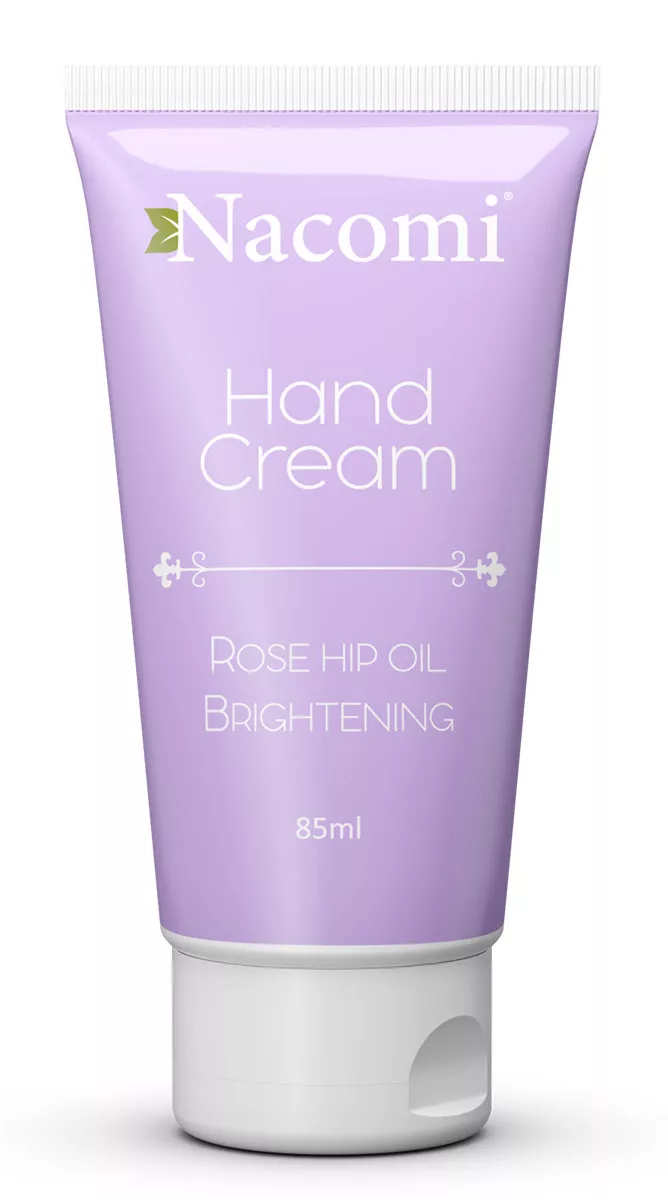 Rozjaśniający krem do rąk Nacomi to wyjątkowy kosmetyk, który wygładza skórę dłoni i nadaje jej promienny wygląd. Dzięki naturalnym składnikom jest bardzo bezpieczny i skuteczny. W składzie znajduje się olejek z dzikiej róży, który uelastycznia, wygładza i działa odmładzająco na skórę. Pomaga również uszczelnić ścianki naczyń krwionośnych, zapobiegając ich pękaniu oraz przeciwdziała powstawaniu przebarwień. Olej z nasion migdałowca zwyczajnego regeneruje i nawilża, podczas gdy witaminy E i C działają jako silne antyoksydanty, nawilżając i opóźniając procesy starzenia się skóry. Proteiny owsa łagodzą skórę, czyniąc ją zdrową i odporną.