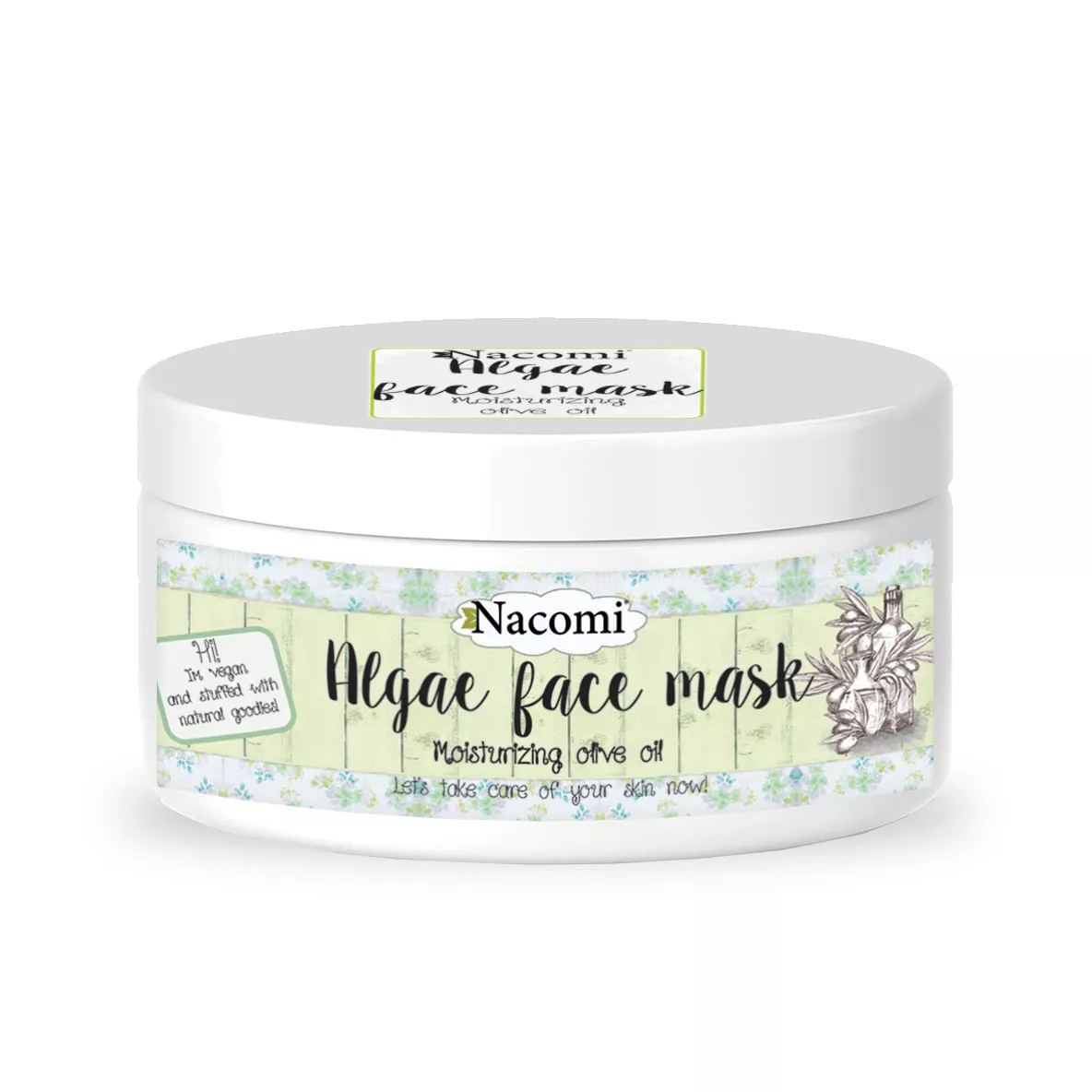 Każda z nas wie, że nawilżenie jest bardzo ważne dla pielęgnacji skóry. Codziennie tracimy wilgoć, przez co skóra staje się sucha i szybciej się starzeje. Aby na dłużej zatrzymać młodość i zdrowy wygląd, używaj maski algowej nawilżającej Nacomi. Jest to produkt dedykowany osobom, które mają problem ze skórą nadmiernie przesuszoną i skłonną do zmarszczek. W ekstrakcie z liści oliwnych (z oleuropeiną) znajdują się składniki aktywne, które wzmacniają układ immunologiczny i uszczelniają naczynia krwionośne. Przy regularnym stosowaniu skóra przestaje być szorstka, a ekstrakt działa nawilżająco i eliminuje podrażnienia. Algi regenerują zmęczoną cerę, wyrównują koloryt skóry oraz eliminują blizny. Dzięki algom twoja skóra będzie wyglądać młodziej. Oliwa z oliwek zawiera witaminę F, która uszczelnia strukturę skóry, nawilża i chroni, nie zapychając porów. Ziemia okrzemkowa pomaga pozbyć się toksyn, działa przeciwbakteryjnie i delikatnie złuszcza. Produkt jest wegański, zawiera tylko naturalne składniki i nie był testowany na zwierzętach.