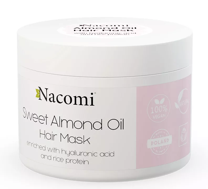 Maska do włosów z olejem ze słodkich migdałów, kwasem hialuronowym i proteinami ryżu marki Nacomi to doskonały wybór dla osób z włosami normalnymi i suchymi. Dzięki unikalnej formule, maska intensywnie nawilża, wzmacnia oraz dodaje blasku włosom, sprawiając, że stają się one odżywione i zdrowo wyglądające. Olej ze słodkich migdałów, bogaty w nienasycone kwasy tłuszczowe i witaminę E, zapewnia odpowiednie nawilżenie. Kwas hialuronowy i proteiny ryżu zapobiegają elektryzowaniu się włosów, nadając im miękkość i ułatwiając ich rozczesywanie.