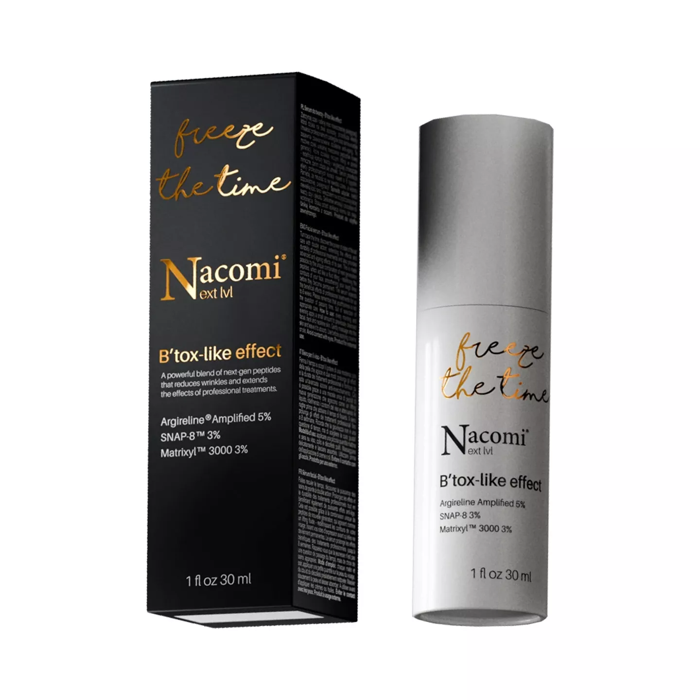 Przełomowa pielęgnacja, która działa na dwa sposoby! Nacomi Next Level B`tox-like effect to serum peptydowe anti-aging, które jednocześnie działa prewencyjnie i wzmacniająco. Zawarte zaawansowane peptydy nowej generacji nie tylko wykazują intensywne działanie anti-aging, ale także przedłużają efekty profesjonalnych kuracji, takich jak toksyna botulinowa, nawet o 8 tygodni! Skutecznie wygładzają zmarszczki mimiczne, napinają skórę i przywracają jej młodzieńczą jędrność. Nie czekaj, aż czas zostawi ślad - wybierz pielęgnację, która zawsze będzie o krok przed zmarszczkami! Młodość to nie kwestia czasu, a wyboru odpowiedniej pielęgnacji.