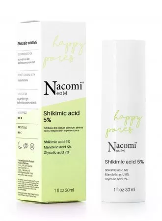 Serum z kwasem szikimowym do cery problematycznej Nacomi Next Level to idealne rozwiązanie dla osób zmagających się z zaskórnikami i rozszerzonymi porami. Dzięki zawartości kwasu szikimowego w stężeniu 5%, produkt skutecznie złuszcza warstwę rogową naskórka i eliminuje niedoskonałości. Jego systematyczne stosowanie zapobiega powstawaniu nowych niedoskonałości, a przy tym jest delikatne dla skóry, nie powodując zaczerwienień ani podrażnień. Serum odblokowuje ujścia gruczołów łojowych, przyspiesza regenerację naskórka i nawilża skórę, zwiększając jej jędrność i elastyczność. Działa antybakteryjnie, wyrównuje koloryt i rozjaśnia cerę, a także reguluje wydzielanie sebum.