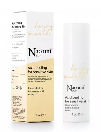 Nacomi Next Level Peeling Kwasowy do Cery Wrażliwej to delikatny zabieg, który odnawia i regeneruje skórę, jednocześnie wyrównując jej koloryt. Dzięki zawartości kwasu laktobionowego i glukonolaktonu działa keratolitycznie, nie wywołując podrażnień. Peeling nawilża, wygładza skórę i sprawia, że staje się aksamitnie gładka. Jego składniki aktywne, jak kwasy PHA, stymulują syntezę kolagenu i elastyny, co działa przeciwzmarszczkowo, neutralizując wolne rodniki i opóźniając proces starzenia. Kwas laktobionowy wspomaga złuszczanie naskórka, wygładza jego strukturę i utrzymuje właściwy poziom nawilżenia, a galaktoza łagodzi podrażnienia i działa przeciwzapalnie.