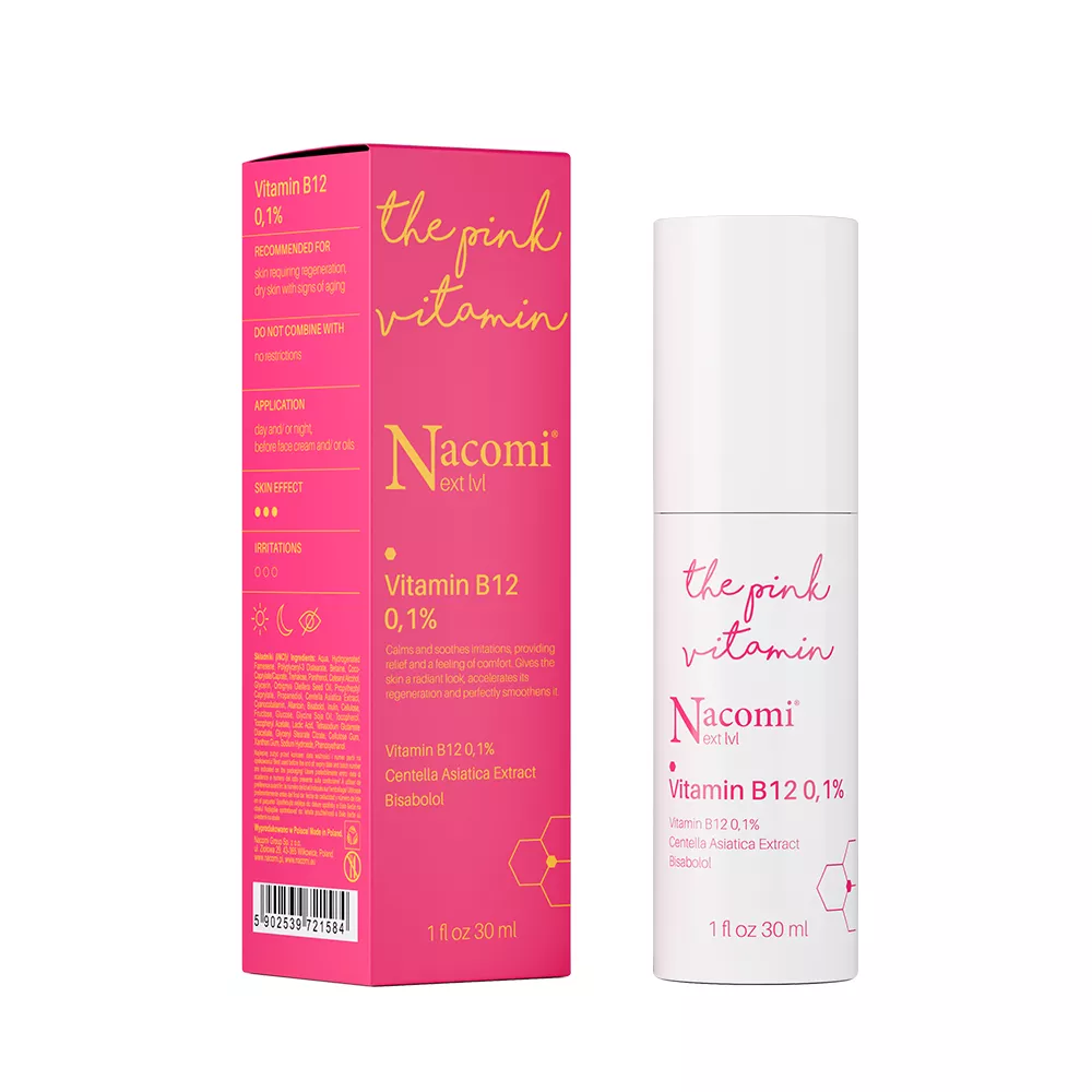 Serum Nacomi Next Level z witaminą B12 o stężeniu 0,1% to idealne rozwiązanie dla wrażliwej skóry. Dzięki unikalnej formule zawierającej witaminę B12, ekstrakt z wąkroty azjatyckiej oraz panthenol, serum intensywnie regeneruje, wygładza i eliminuje podrażnienia. Regularne stosowanie zapewnia głębokie nawilżenie i odżywienie skóry, jednocześnie spowalniając procesy starzenia. Połączenie tych składników sprawia, że skóra staje się gładka, miękka i pełna blasku.
