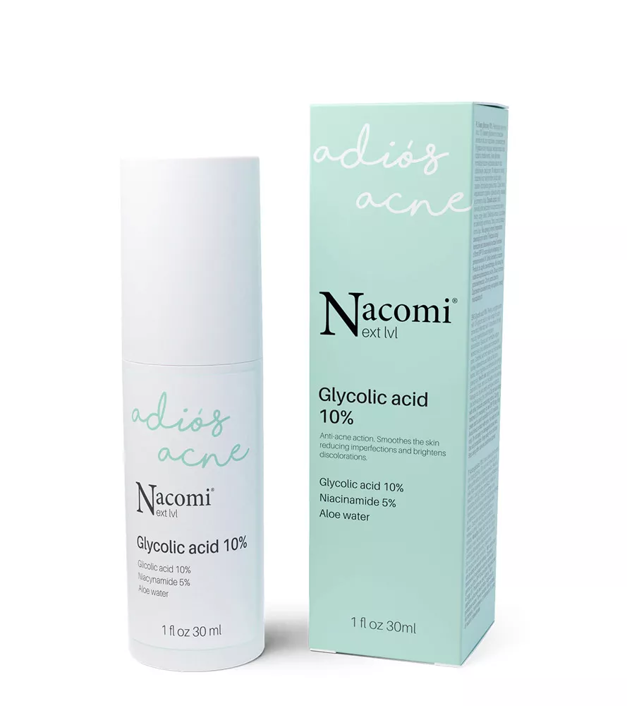 Nacomi Next Level, złuszczające serum z kwasem glikolowym 10% to innowacyjne serum na noc, które przywraca równowagę skórze problematycznej i trądzikowej. Dzięki działaniu peelingującemu, redukuje niedoskonałości oraz rozjaśnia przebarwienia. Zawarty kwas glikolowy 10% reguluje wydzielanie sebum, łagodzi stany zapalne i przyspiesza gojenie. Witamina B3 wnika w głąb skóry, regulując produkcję sebum, zwężając pory oraz rozjaśniając przebarwienia pigmentacyjne. Serum dodatkowo nawilża, działa antyoksydacyjnie i oczyszcza cerę.