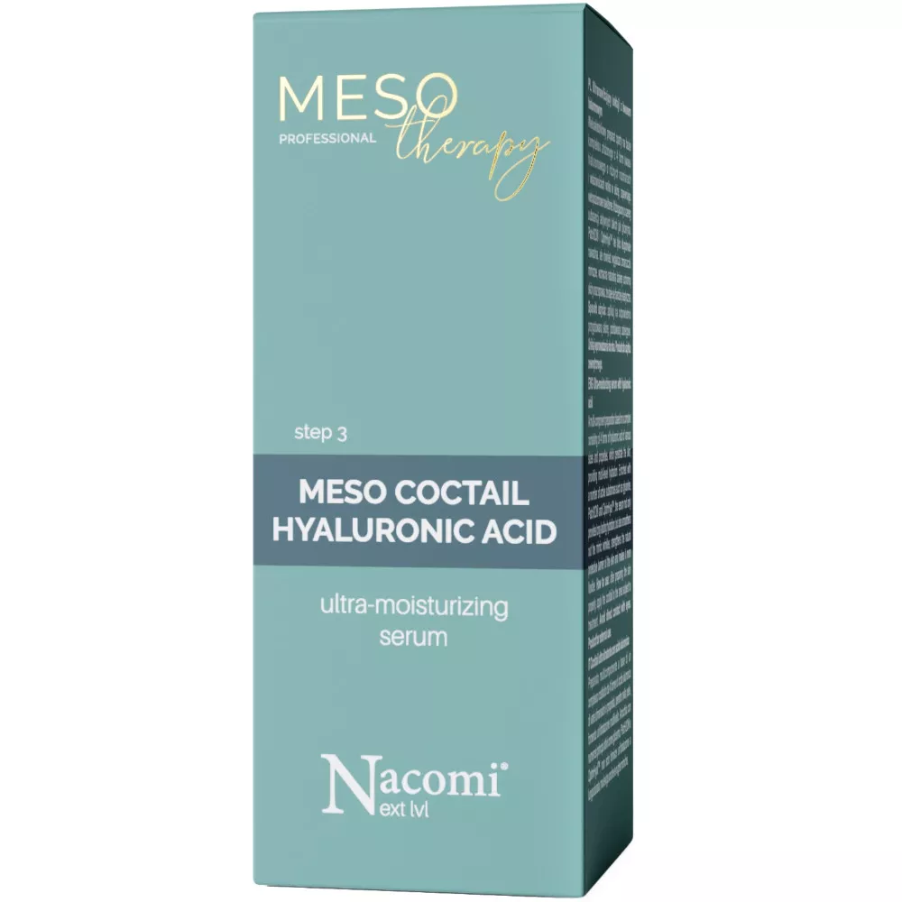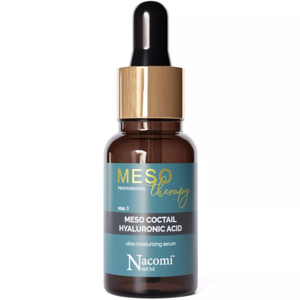 Odkryj moc wieloskładnikowego preparatu Nacomi Next lvl Meso, ultranawilżającego koktajlu z kwasem hialuronowym, który dzięki kompleksowi z 4 form kwasu hialuronowego o różnych rozmiarach i właściwościach, wnika głęboko w skórę, zapewniając jej intensywne nawilżenie na wielu poziomach. Wzbogacony o zaawansowane substancje aktywne, takie jak gliceryna, PatcH2O® i OptimHyal™, nie tylko długotrwale nawadnia, ale również wygładza zmarszczki mimiczne, wzmacnia naturalną barierę ochronną skóry oraz poprawia jej elastyczność.