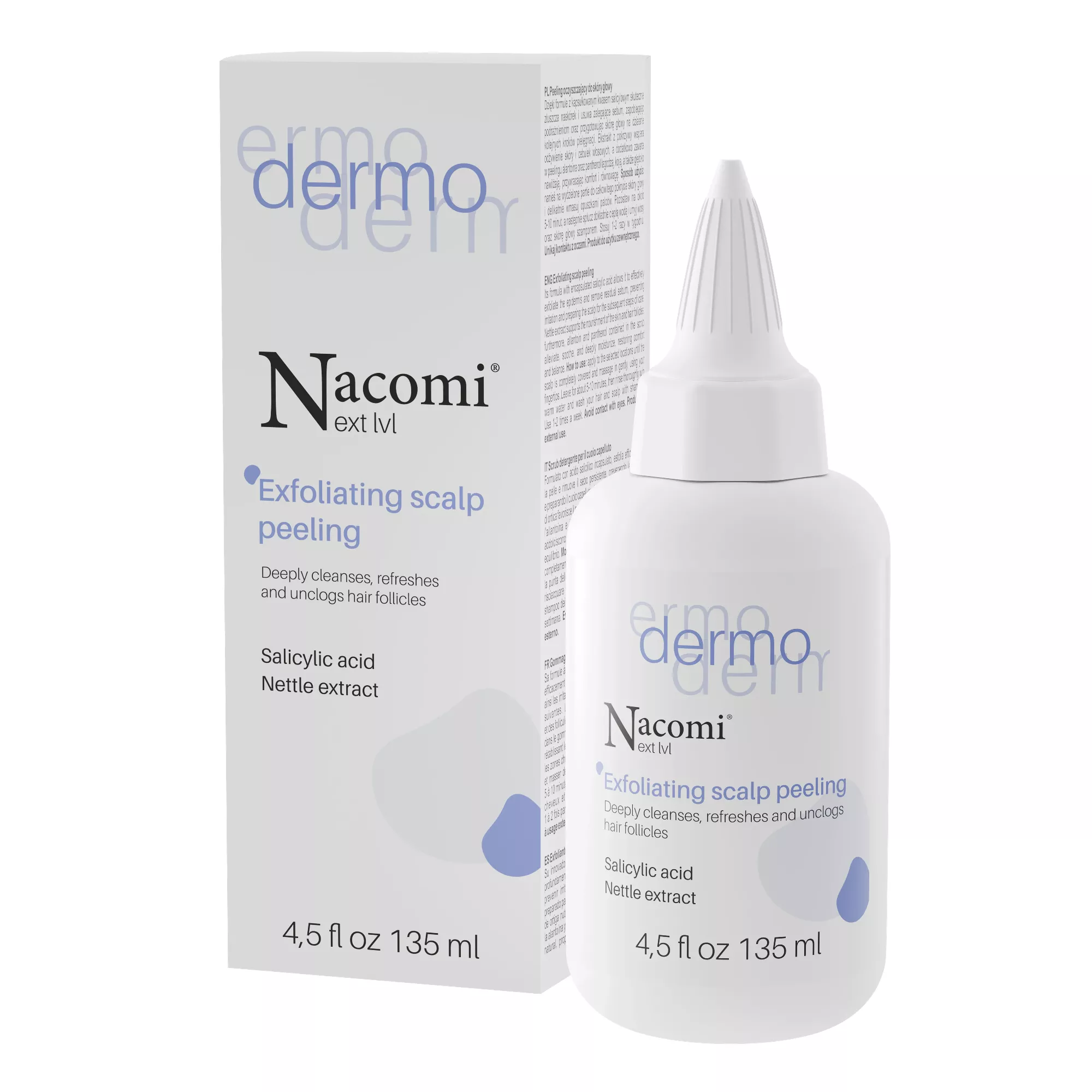 Nacomi Nxt Lvl Dermo to peeling oczyszczający do skóry głowy, który skutecznie eliminuje nadmiar sebum, resztki kosmetyków i złuszcza nagromadzony naskórek. Dzięki temu zapobiega podrażnieniom i przywraca skórze uczucie świeżości. Regularne stosowanie wspiera odżywienie skóry głowy i cebulek włosowych, poprawia mikrokrążenie oraz doskonale przygotowuje skórę na kolejne etapy pielęgnacji, co znacząco wpływa na kondycję włosów.
