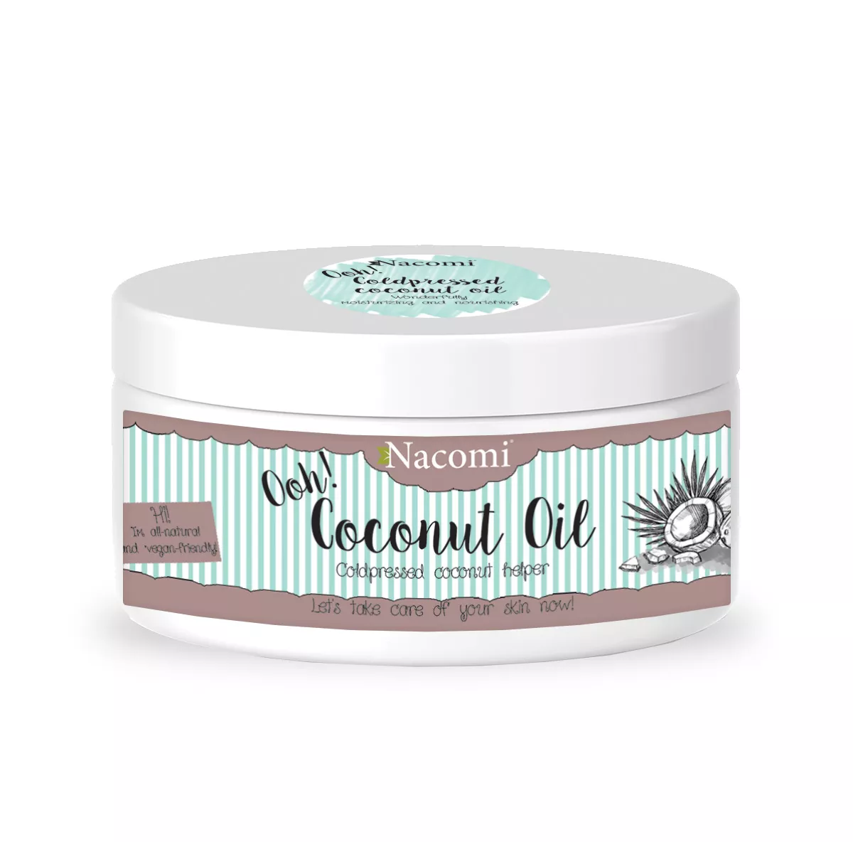 Czy wiesz, że istnieje kosmetyk uniwersalny, który pozwoli ci rozwiązać mnóstwo problemów i sprawi, że będziesz piękna i zdrowa? Taką moc ma olej kokosowy nierafinowany Nacomi. Pewnie znasz go z kuchni – teraz czas, żeby zaprzyjaźnił się z Twoją kosmetyczką! Olej kokosowy ma liczne dobroczynne właściwości, nawilża, odżywia, a do tego przepięknie pachnie. Pomoże osobom ze skórą suchą albo skłonną do trądziku. Nacomi sprowadza olej z Filipin, zawsze dbając o wysoką jakość swoich produktów. Wytwarza się go metodą na zimno – orzechy palmy kokosowej są tłoczone, dzięki czemu w surowcu zachowane zostają jego cenne właściwości. Produkt w pełni wegański, więc możesz być pewna, że w środku znajdziesz tylko naturalne składniki. Kosmetyk nie był testowany na zwierzętach. Wersja nierafinowana oznacza, że w kosmetyku znajduje się więcej składników odżywczych, intensywniejszy jest również zapach.
