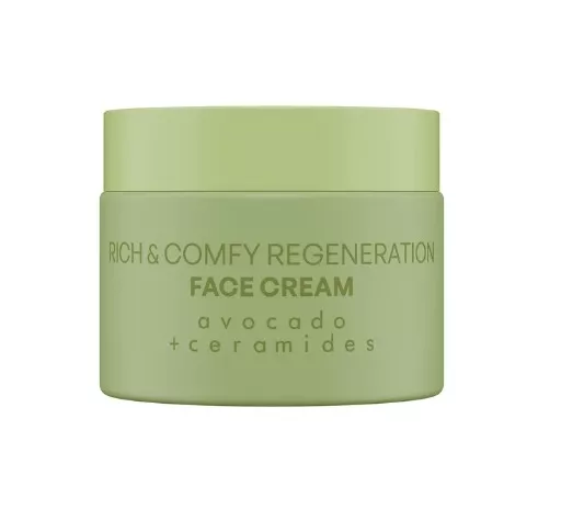 Potrzebujesz uniwersalnego kremu, który zadba o Twoją skórę i przyniesie jej ulgę? Krem do twarzy Nacomi Rich&Comfy Regeneration sprawdzi się w każdych warunkach. Jego bogata formuła wzbogacona m.in. ceramidami oraz odżywczym ekstraktem z awokado nie tylko intensywnie nawilża i regeneruje, ale także koi i chroni przesuszoną skórę. Dodaje cerze blasku, przywraca jej zdrowszy wygląd oraz likwiduje uczucie szorstkości, wygładzając naskórek.
