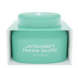 Delikatny suflet o właściwościach antyoksydacyjnych Nacomi Antioxidant Marine skutecznie rozwiązuje problem wiotkiej, pozbawionej jędrności skóry. Działa również przeciwzmarszczkowo, redukując istniejące zmarszczki i zapobiegając powstawaniu nowych. Bogaty kompleks składników z głębin morskich wnika w głąb skóry, przywracając jej jędrność i elastyczność. Suflet redukuje kurze łapki pod oczami oraz chroni przed negatywnym działaniem czynników zewnętrznych. Główny składnik aktywny sufletu Nacomi to ekstrakt z niebiesko-zielonych alg. Odpowiednik naturalnego retinolu zawarty w algach zmniejsza głębokość zmarszczek oraz zapobiega ich powstawaniu. Ekstrakt z glonów wakame redukuje obrzęki i rozjaśnia cienie, zawierając fukoksantynę, która wspiera procesy regeneracji i odbudowy kolagenu, dodatkowo hamując procesy starzenia się skóry.