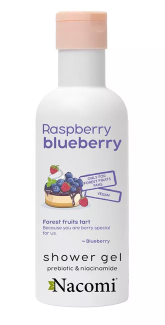 Żel pod prysznic Nacomi borówka i malina to produkt, który nie tylko oczyszcza, ale także odmładza skórę. Dzięki ekstraktowi z czarnej borówki, żel posiada właściwości przeciwzapalne, które łagodzą podrażnienia, wygładzają, rozjaśniają i ujędrniają skórę. Dodatkowo, ma on działanie antyoksydacyjne. Wyciąg z malin odświeża skórę, łagodzi podrażnienia, działa antyoksydacyjnie oraz chroni przed promieniowaniem UVB. Prebiotyki zawarte w żelu wspierają naturalne mechanizmy obronne skóry, a witamina E zmniejsza uczucie swędzenia i regeneruje skórę. Witamina C poprawia jędrność, a gliceryna zapewnia nawilżenie. Niacynamid normalizuje proces rogowacenia naskórka.