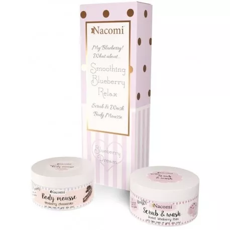 Nacomi, zestaw prezentowy: pianka pielęgnująco-myjąca + mus do ciała Borówkowy Sernik