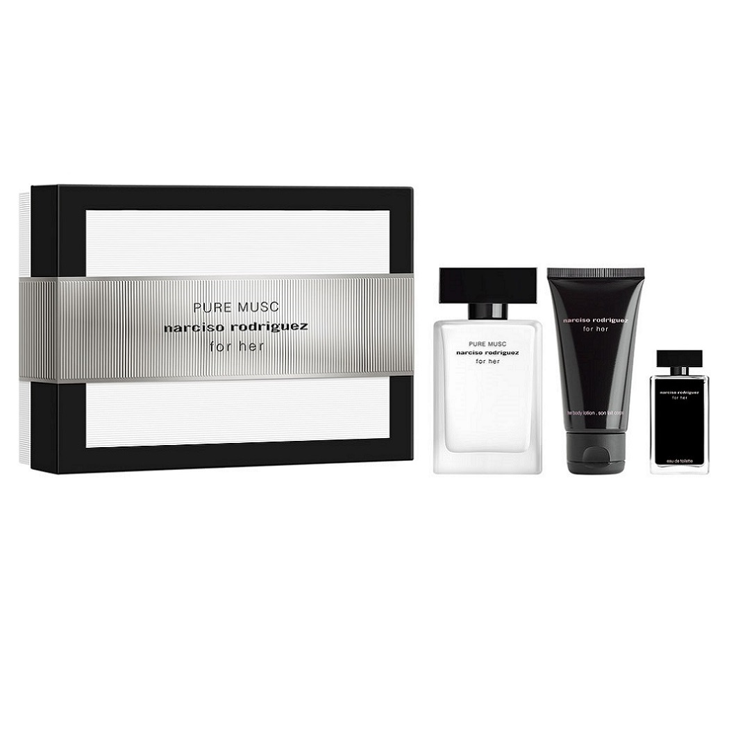 Narciso Rodriguez Pure Musc For Her zestaw woda perfumowana spray 50ml + For Her woda toaletowa spray 7.5ml + balsam do ciała 50ml (W)