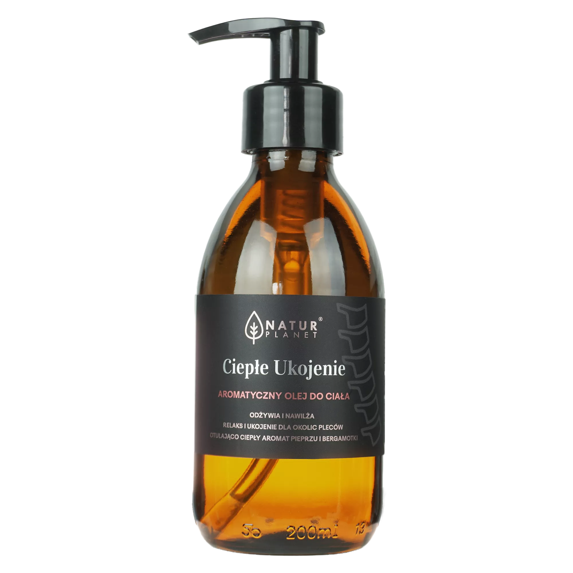 Odkryj magiczne właściwości olejku do masażu NaturPlanet "Ciepłe ukojenie". To starannie skomponowane połączenie drogocennych olejów ze słodkich migdałów, makadamia i jojoba. Olejek ten nie tylko odżywia i nawilża skórę, ale także sprawia, że staje się ona miękka i delikatna w dotyku. Intensywna woń eterycznego olejku z pieprzu czarnego rozgrzewa, zapewniając uczucie ciepła, podczas gdy słodycz bergamotki rozpieszcza zmysły, wzmacniając uczucie odprężenia podczas masażu.