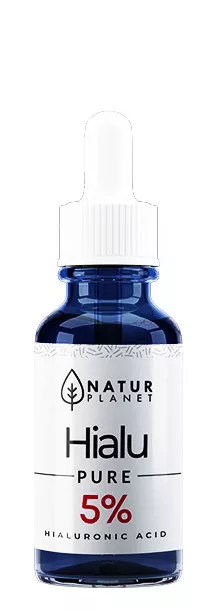 Kwas hialuronowy jest naturalnym polisacharydem obecnym w skórze człowieka, odpowiedzialnym za jej jędrność, sprężystość i ogólną kondycję. Z czasem ilość tego składnika w skórze maleje, co prowadzi do powstawania zmarszczek. Kwas hialuronowy odpowiada również za właściwe nawilżenie skóry i ochronę przed szkodliwymi czynnikami zewnętrznymi. Dzięki temu, serum z czystym kwasem hialuronowym 5% NaturPlanet Hialu-Pure Forte skutecznie poprawia nawodnienie skóry, sprawiając, że staje się ona bardziej elastyczna, sprężysta i promienna. Serum działa odżywczo i opóźnia procesy starzeniowe. Można je stosować pod oczy, jako serum do twarzy lub jako podkład pod krem dla zwiększenia jego efektywności. Produkt nie uczula i nie podrażnia.