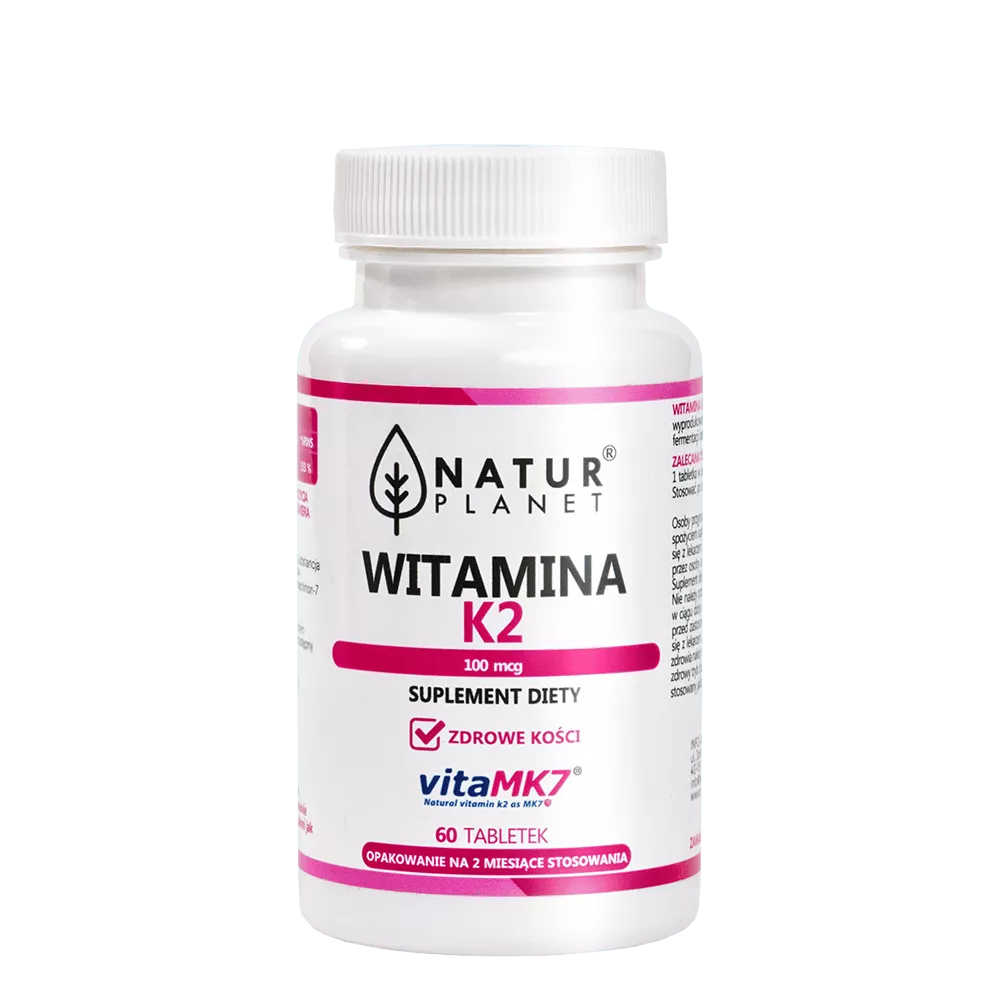 Suplement diety NaturPlanet Witamina K2-MK7 100mcg to wysokiej jakości preparat, dostarczający niezbędną dawkę witaminy K2, pozyskiwaną z fermentacji soi Natto przez bakterie Bacillus Subtilis. Jedna tabletka zawiera 100 µg witaminy K2, co stanowi 133% dziennej referencyjnej wartości spożycia dla dorosłych, pomagając uzupełnić niedobory tej witaminy w diecie.