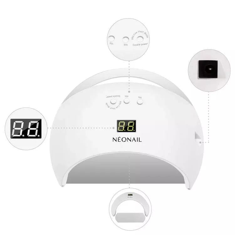 Profesjonalna ECO lampa do manicure hybrydowego Neonail Lampa LED ECO 21W/48. Wyposażona w wysokiej jakości 21 diod LED. Lampa ma moc 21W lecz utwardza produkt w takim czasie, jak inne lampy o mocy 48W. Z łatwością wykonasz dzięki niej stylizacje zarówno lakierami hybrydowymi jak i żelami. Czas utwardzania jest analogiczny jak w przypadku lamp 48W, przy jednoczesnym mniejszym zużyciu energii. Wysokiej jakości wyświetlacz alfanumeryczny pokaże Ci wybrany czas pracy. Lampa wyposażona jest w aż 3 czasy utwardzania do wyboru: 30s/60s i 99s. Dodatkowo wbudowany sensor ruchu zapewni maksymalną wygodę użytkowania. Lampa posiada 2 inteligentne systemy: zapamiętywania ustawienia mocy i Low Heat Mode, odpowiedzialny za stopniowe nagrzewanie się lampy.