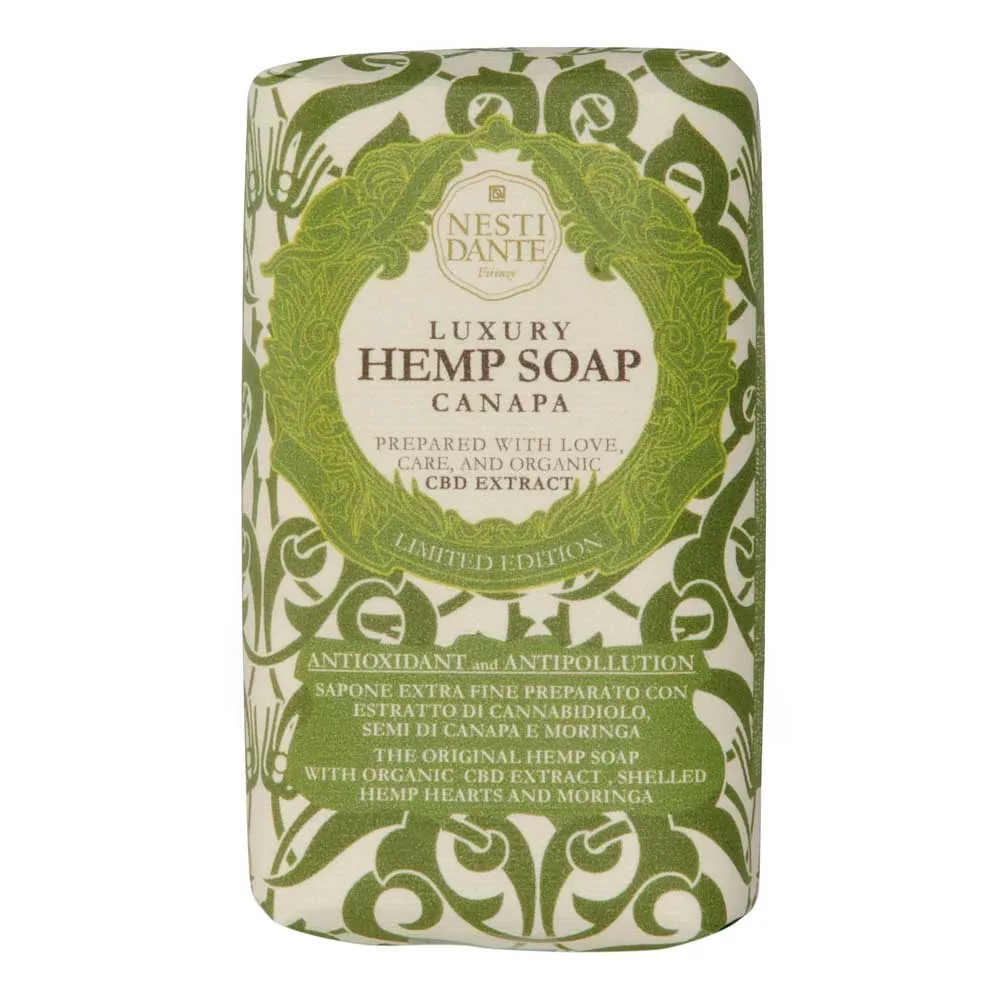 Nesti Dante Luxury Hemp Soap to luksusowe mydło toaletowe o wadze 250g, które łączy w sobie naturalne składniki, takie jak ekstrakt CBD, nasiona konopi i moringa. Dzięki swojej unikalnej formule skutecznie chroni skórę przed szkodliwymi czynnikami zewnętrznymi, pozostawiając ją miękką, elastyczną, odświeżoną i doskonale oczyszczoną. Mydło charakteryzuje się wyjątkowym zapachem, z nutami gardenii, jaśminu i frezji, które zapewniają uczucie relaksu i luksusu podczas każdej kąpieli.