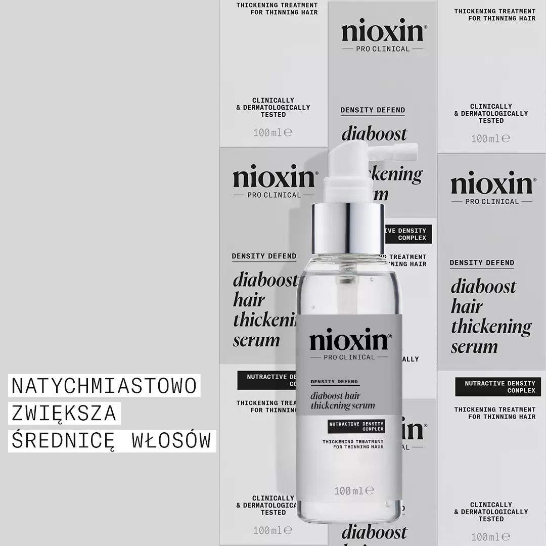 Nioxin Density Defend Diaboost to innowacyjna kuracja zwiększająca średnicę włosów, stworzona specjalnie z myślą o osobach z cienkimi, przerzedzonymi włosami. Dzięki doświadczeniu marki Nioxin, będącej ekspertem w pielęgnacji włosów od ponad 30 lat, serum oferuje natychmiastowy efekt pogrubienia każdego pasma oraz widocznie zwiększoną objętość fryzury. Zaawansowana technologia HTX, bazująca na połączeniu kofeiny, niacynamidu i pantenolu, skutecznie wzmacnia włosy u nasady, chroniąc je przed łamliwością i sprawiając, że włosy stają się pełniejsze już po pierwszym użyciu.