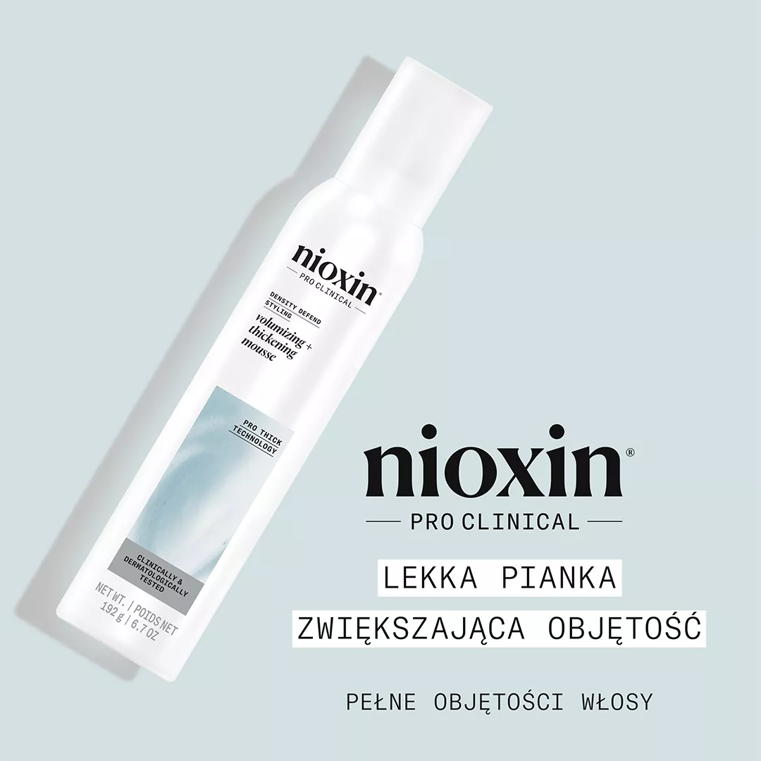 Nioxin Density Defend to pogrubiający mus do układania włosów, który powstał z myślą o osobach z cienkimi lub przerzedzającymi się włosami. Marka Nioxin to ekspert w dziedzinie pielęgnacji włosów z ponad 30-letnim doświadczeniem, oferujący innowacyjne rozwiązania dla pełniejszych, zdrowszych i bardziej gęstych fryzur. Zaawansowana technologia ProThick sprawia, że produkt skutecznie zwiększa objętość włosów, podnosi je u nasady i ułatwia stylizację, nie obciążając przy tym kosmyków. Mus doskonale sprawdza się zarówno podczas codziennego układania, jak i stylizacji na specjalne okazje, zapewniając długotrwałe utrwalenie oraz naturalny wygląd fryzury.