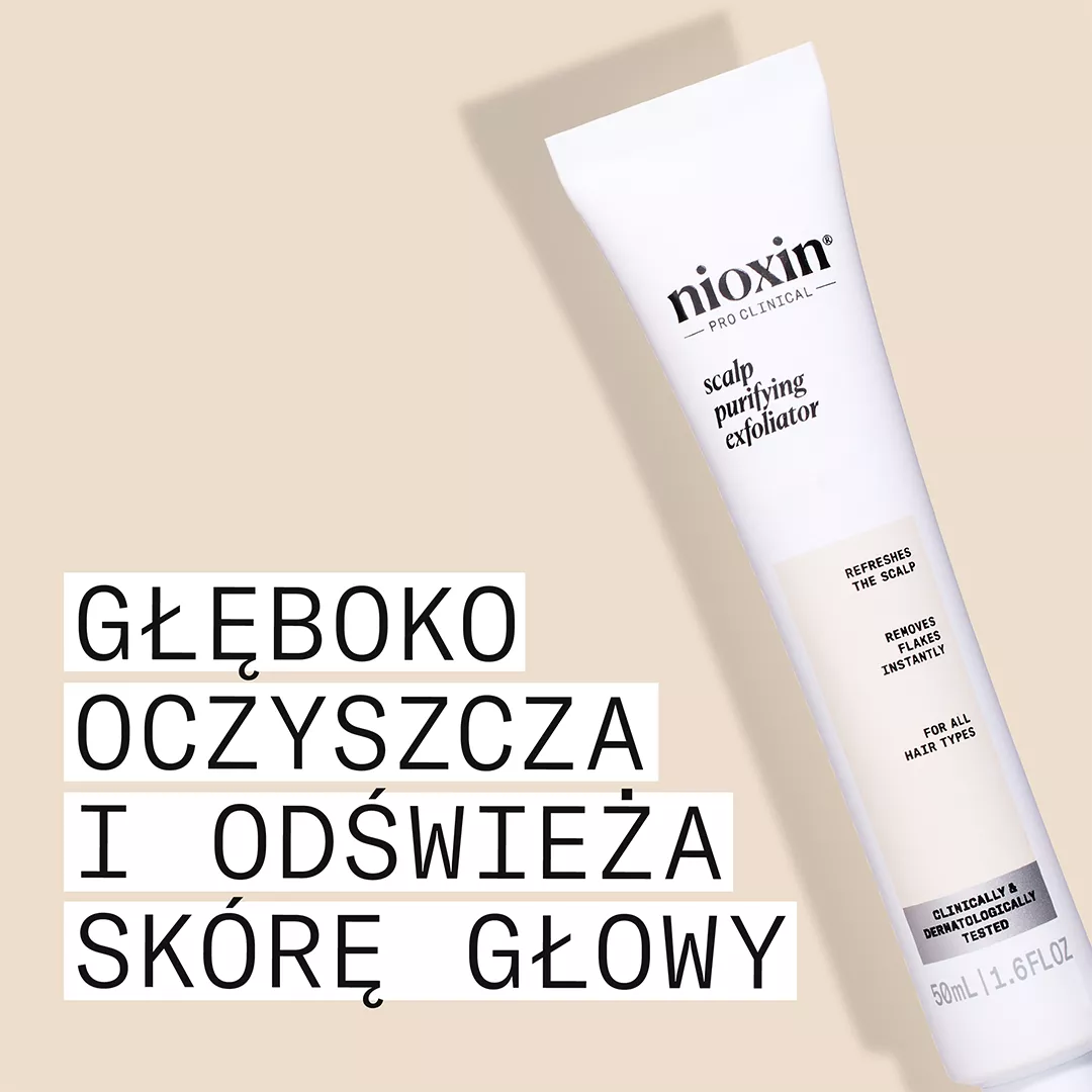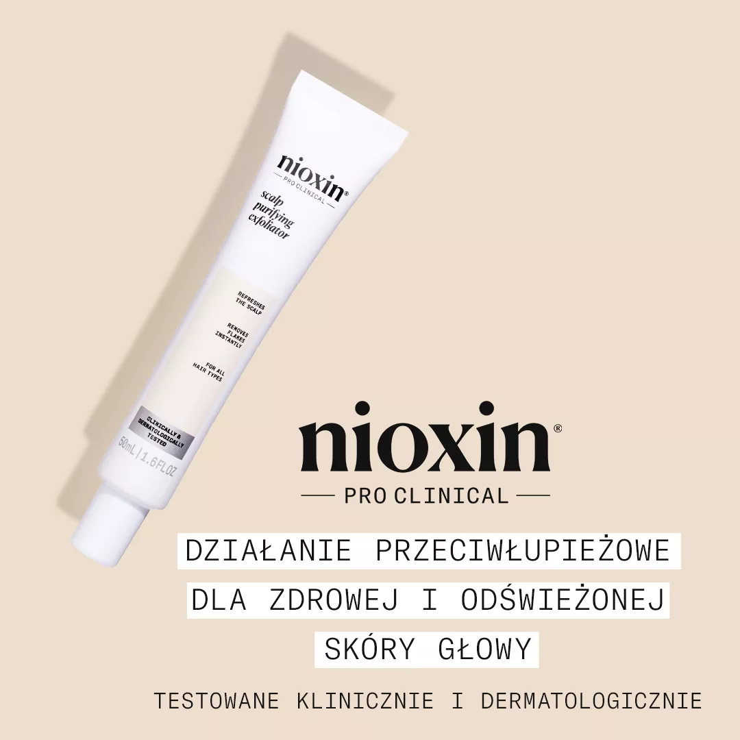 Nioxin Scalp Recovery oczyszczający exfoliator natychmiastowo usuwający łupież to innowacyjny zabieg stworzony z myślą o kompleksowej pielęgnacji skóry głowy. Marka Nioxin, lider w dziedzinie zdrowych i pełnych włosów, wykorzystuje ponad 30 lat doświadczenia, by oferować skuteczne rozwiązania dla osób z problemem łupieżu i przerzedzających się włosów. Zaawansowana technologia oraz unikalna formuła z piroktonem olaminy i ekstraktem z zielonej herbaty sprawiają, że produkt działa już od pierwszego użycia, skutecznie oczyszczając skórę głowy i przywracając jej równowagę.