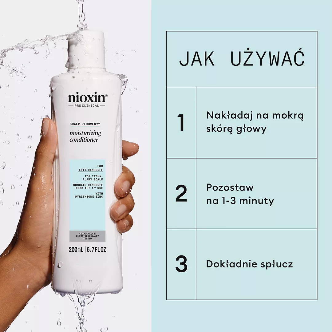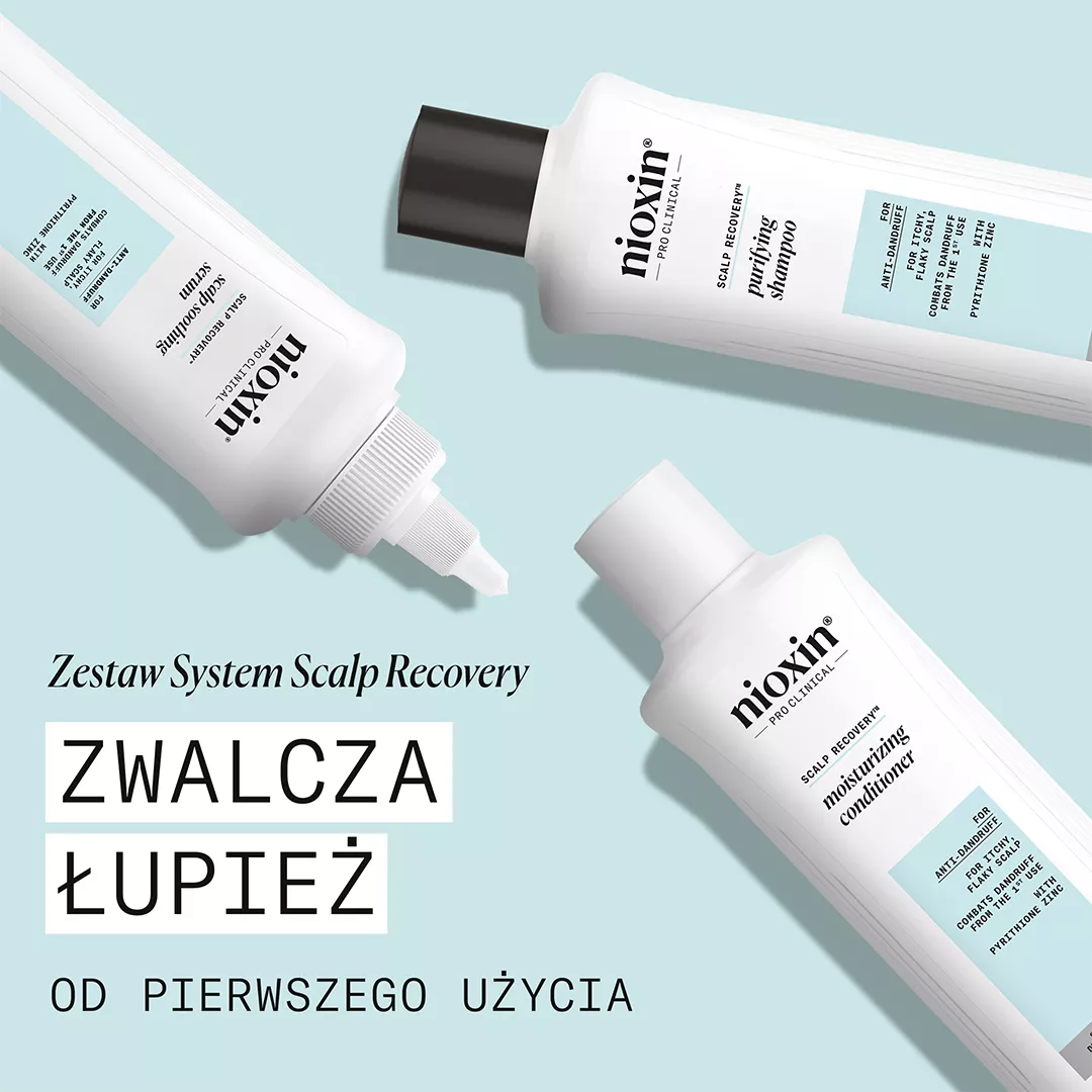 Nioxin Scalp Recovery odżywka przeciwłupieżowa do swędzącej skóry głowy to profesjonalna kuracja stworzona z myślą o osobach zmagających się z łupieżem, suchością oraz swędzeniem skóry głowy. Marka Nioxin, od ponad 30 lat uznana za eksperta w pielęgnacji włosów cienkich i przerzedzonych, wykorzystuje zaawansowaną technologię, aby zapewnić widoczne efekty już po pierwszym użyciu. Dzięki innowacyjnej formule z technologią ZPT-NIODerma™ i ekstraktem z zielonej herbaty, odżywka łagodzi objawy łojotokowego zapalenia skóry i pomaga utrzymać naturalną równowagę skóry głowy, pozostawiając włosy miękkie, gładkie oraz łatwe do rozczesania.
