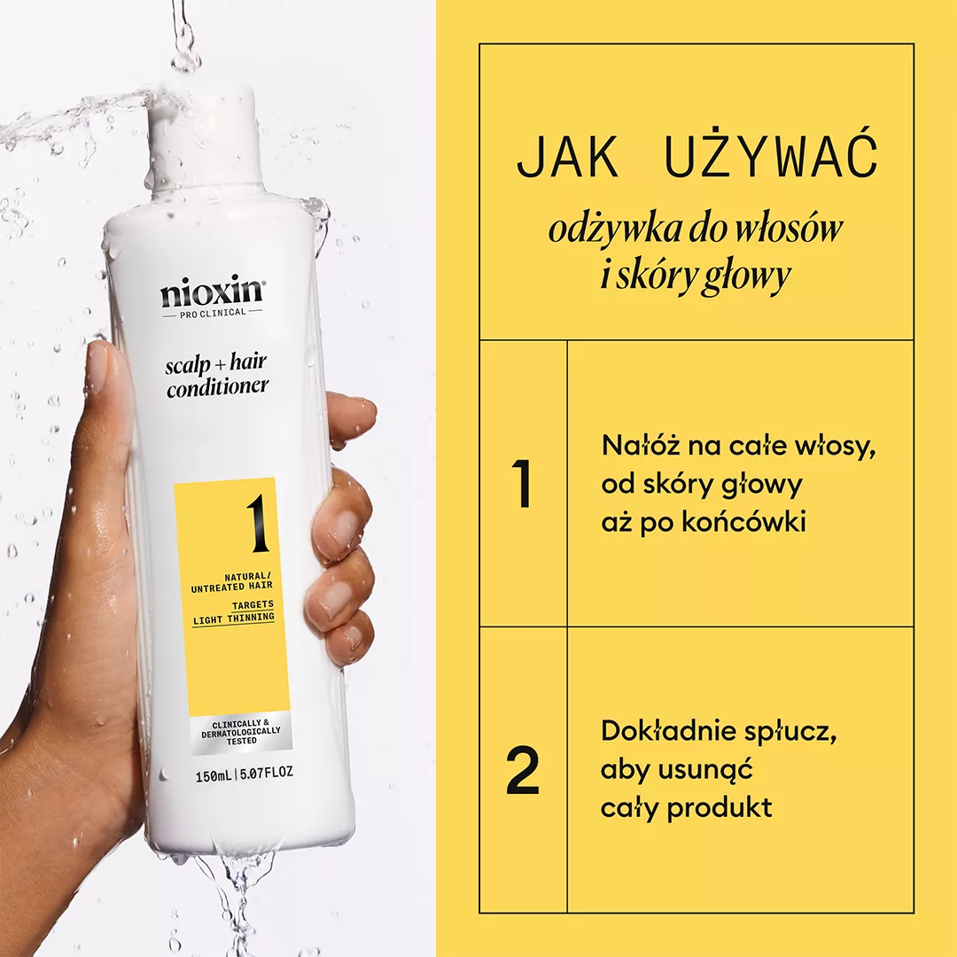 Nioxin System 1 odżywka Scalp Therapy do włosów naturalnych, lekko przerzedzonych to profesjonalny produkt stworzony z myślą o osobach, które pragną wzmocnić swoje włosy, nadać im objętość i poprawić kondycję skóry głowy. Nioxin to marka z ponad 30-letnim doświadczeniem, uznawana za eksperta w dziedzinie pielęgnacji włosów przerzedzonych. Dzięki zaawansowanej technologii i innowacyjnym formułom, odżywka zapewnia widoczne efekty już po pierwszym użyciu, przynosząc zdrowy wygląd i uczucie pełniejszych włosów każdego dnia.