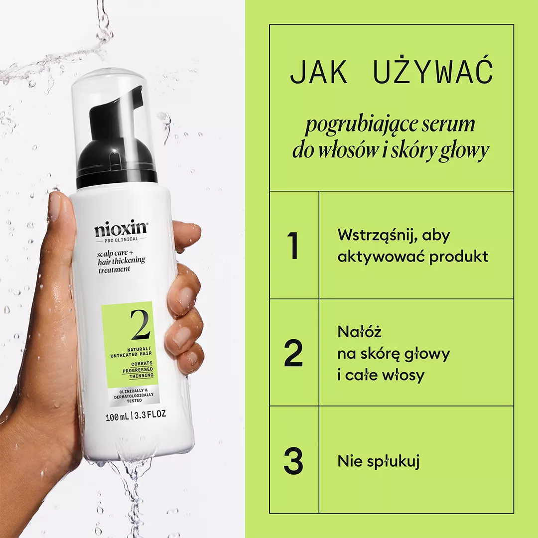 Nioxin System 2 serum bez spłukiwania do skóry głowy i włosów naturalnych, mocno przerzedzonych to innowacyjne rozwiązanie stworzone z myślą o osobach borykających się z problemem widocznego przerzedzenia włosów. Produkt wykorzystuje ponad 30 lat doświadczenia marki Nioxin w pielęgnacji cienkich i osłabionych włosów, gwarantując skuteczne rezultaty już od pierwszego użycia. Dzięki zaawansowanej technologii Nioxin, serum nie tylko odświeża skórę głowy, ale także widocznie zwiększa objętość i gęstość włosów, zapewniając im pełniejszy i zdrowszy wygląd.