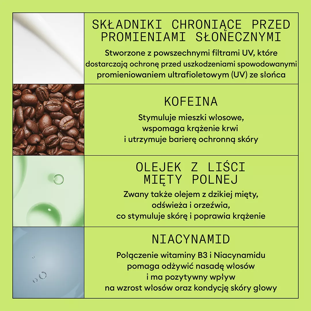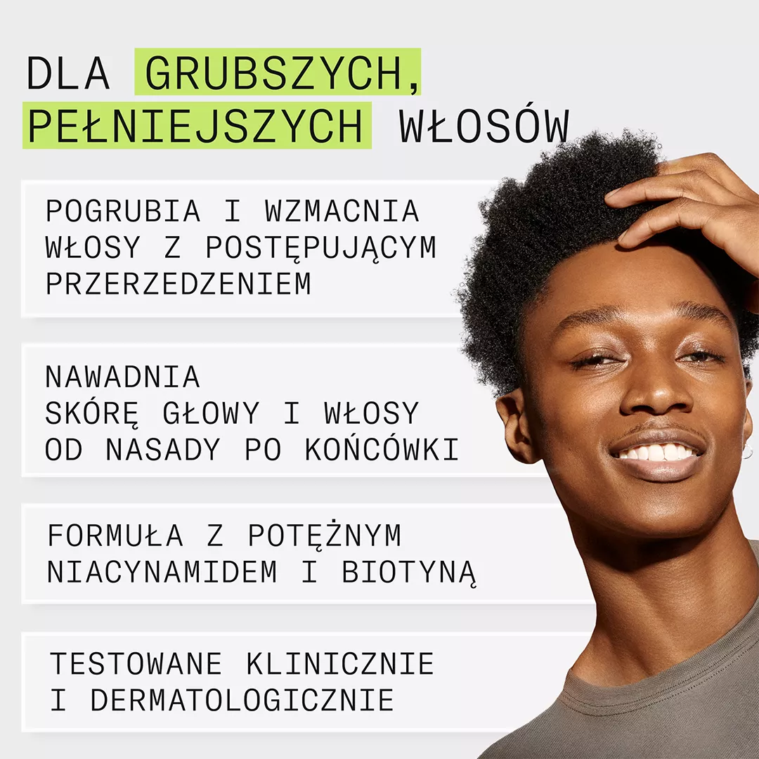 - Zawiera nikotynian, który wspiera zdrową kondycję skóry głowy.
