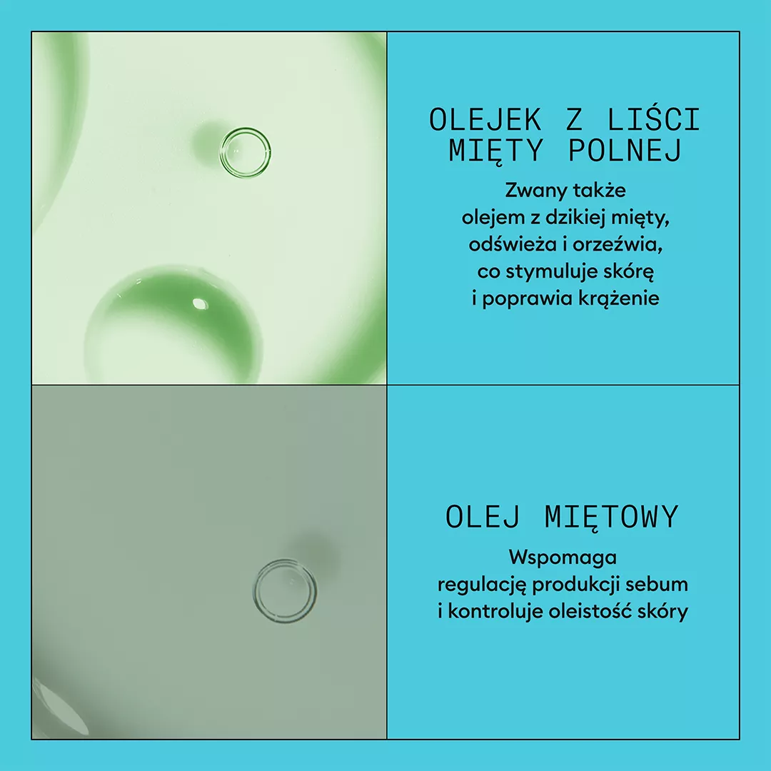 - Odświeżający olejek miętowy natychmiast koi i odświeża skórę głowy