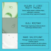 - Silnie działająca mieszanka olejku z dzikiej mięty, olejku z mięty pieprzowej i kwasu salicylowego dla lepszego oczyszczenia i odświeżenia
