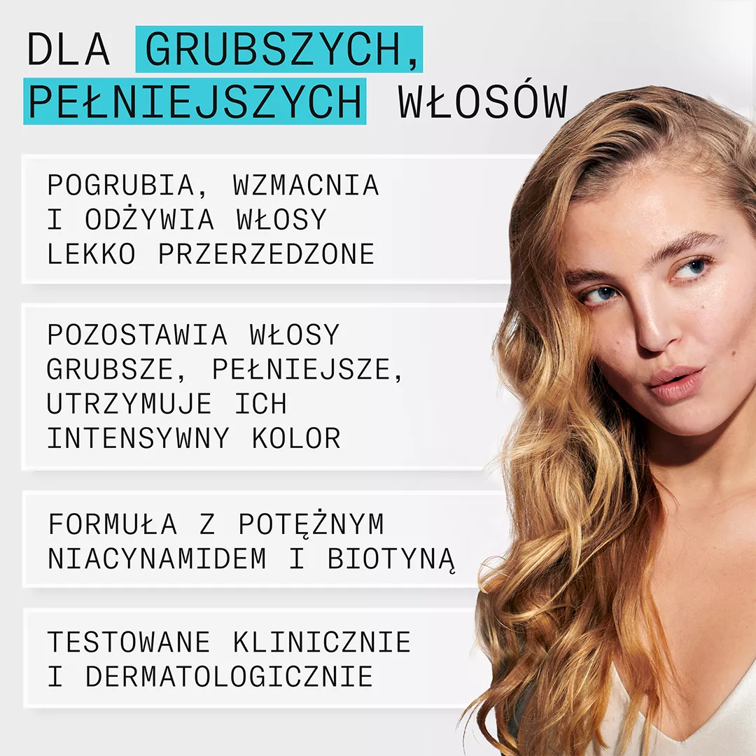 - Widoczne pogrubienie włosów u 85% użytkowników po 30 dniach regularnego stosowania*
