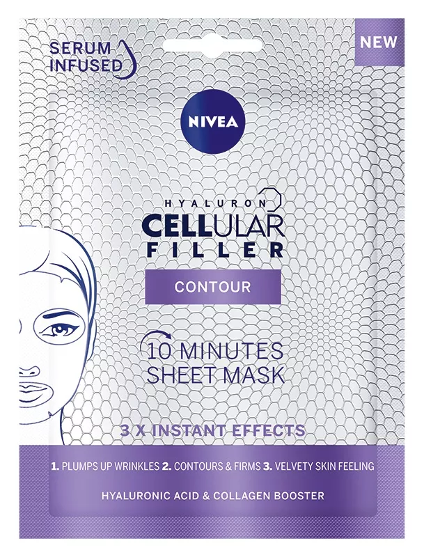 Odkryj 10-minutową maskę w płachcie NIVEA® Hyaluron Cellular Filler, wzbogaconą o 20 ml serum z kwasem hialuronowym i boosterem kolagenu. Maska ta oferuje trzy natychmiastowe efekty: wypełnia zmarszczki, poprawia kontur twarzy oraz zapewnia uczucie aksamitnej w dotyku cery. Aby utrzymać zdrowy wygląd skóry, zaleca się stosowanie maski dwa razy w tygodniu. Odkryj także inne maski w płachcie od NIVEA.