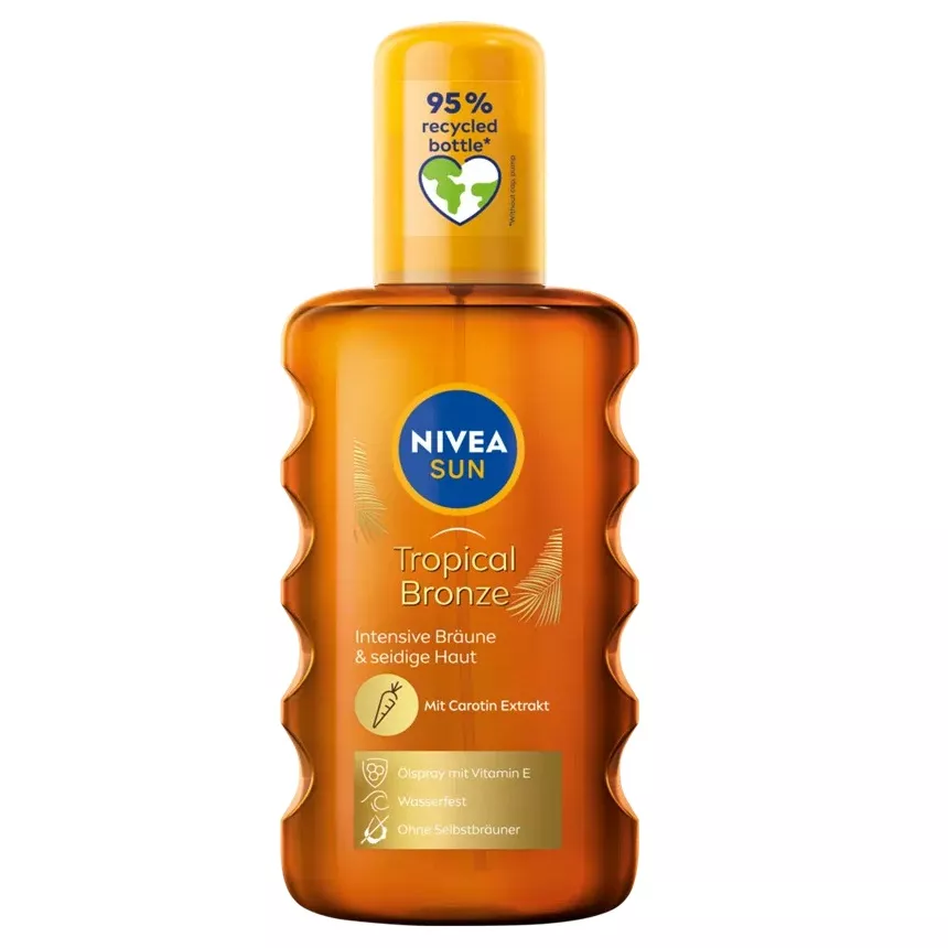 Odkryj piękno złocistej opalenizny z Nivea Intense Bronze karotenowym olejkiem do opalania w spray’u SPF6. Ten wyjątkowy produkt, wzbogacony ekstraktem z karotenu i witaminą E, pomoże Ci uzyskać intensywną i długotrwałą opaleniznę, jednocześnie chroniąc Twoją skórę przed szkodliwym wpływem promieniowania słonecznego. Dzięki wodoodpornej formule bez samoopalacza, możesz cieszyć się słońcem bez obaw. Produkt jest przyjazny dla środowiska, z biodegradowalną w 94% formułą Ocean Respect oraz butelką wykonaną w 95% z materiałów pochodzących z recyklingu.