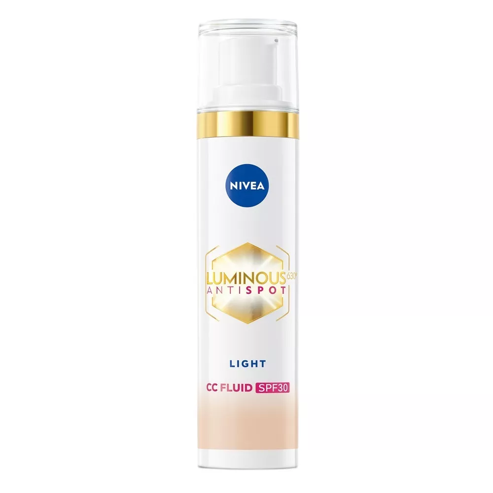 Nivea Luminous630® krem CC przeciw przebarwieniom SPF30 w odcieniu 01 Light to innowacyjny produkt, który oferuje potrójne działanie, aby Twoja skóra wyglądała nieskazitelnie. Jest idealny dla każdego odcienia skóry i nie zatyka porów, co czyni go doskonałym wyborem na co dzień.