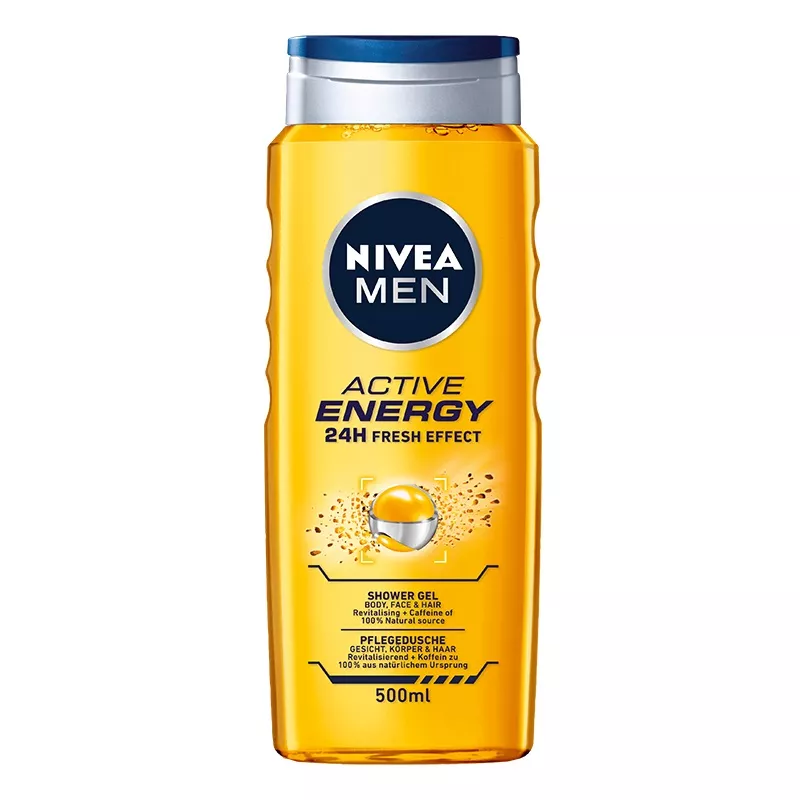 Tak samo, jak łyk kawy, formuła Nivea Men Active Energy sprawi, że poczujesz dawkę energii i orzeźwienia podczas codziennej kąpieli. Żel pod prysznic dla mężczyzn NIVEA MEN Active Energy do mycia ciała, twarzy i włosów został wzbogacony o kofeinę w 100% naturalnego pochodzenia. Lekka formuła podczas aplikacji zamienia się w myjącą pianę, a świeży, męski zapach pobudza i orzeźwia zmysły. Nasz żel jest przyjazny dla środowiska, ponieważ nie zawiera mikroplastików* i jest w 99% biodegradowalny**. Produkt został przebadany dermatologicznie i ma pH odpowiednie dla skóry. Swoją rutynę pielęgnacyjną możesz uzupełnić o inne kosmetyki z tej samej serii, takie jak produkty do golenia i pielęgnacji twarzy Active Energy.