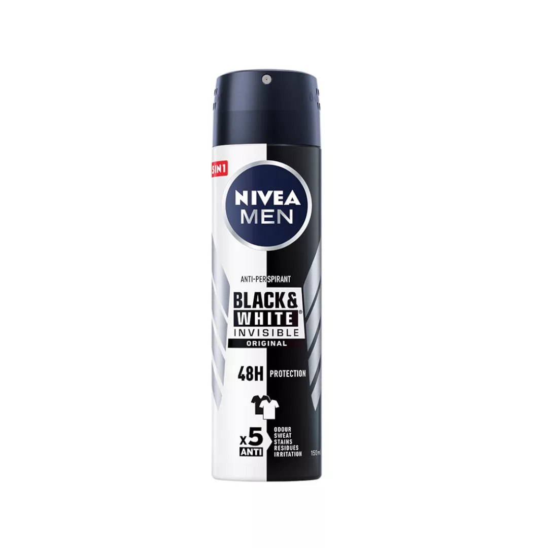 Nivea Men Black&White Invisible Original antyperspirant spray 150ml to zaawansowany produkt stworzony z myślą o mężczyznach, którzy cenią sobie skuteczną ochronę przed poceniem, jednocześnie dbając o swoje ubrania. Dzięki współpracy z Międzynarodowym Instytutem Tekstylnym Hohenstein, ten antyperspirant gwarantuje trwałą ochronę bez plam i przebarwień na odzieży.